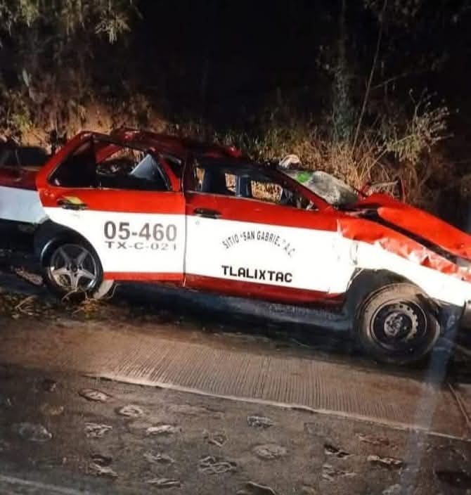 Un taxi del sitio Tlalixtac de Cabrera, identificado por su número económico 05-460/TX-C021, circulaba a gran velocidad cuando sufrió una falla mecánica en los frenos, lo que provocó que el vehículo se precipitara hacia un barranco.